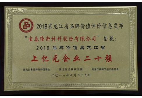 2018品牌價值黑龍江省上億元企業二十強
