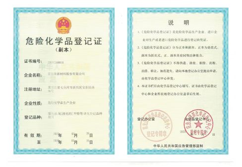 危險化學品登記證副本